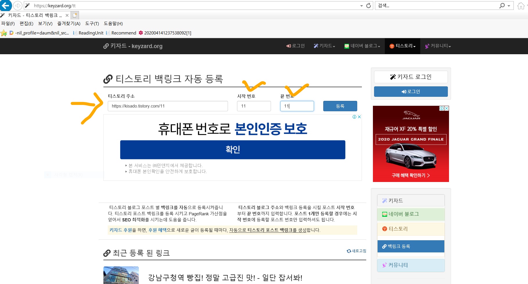 | 티스토리 조회수 상승을 위한 초간단 방법- 구글에서 검색되요 (0) | 2020.11.27 |