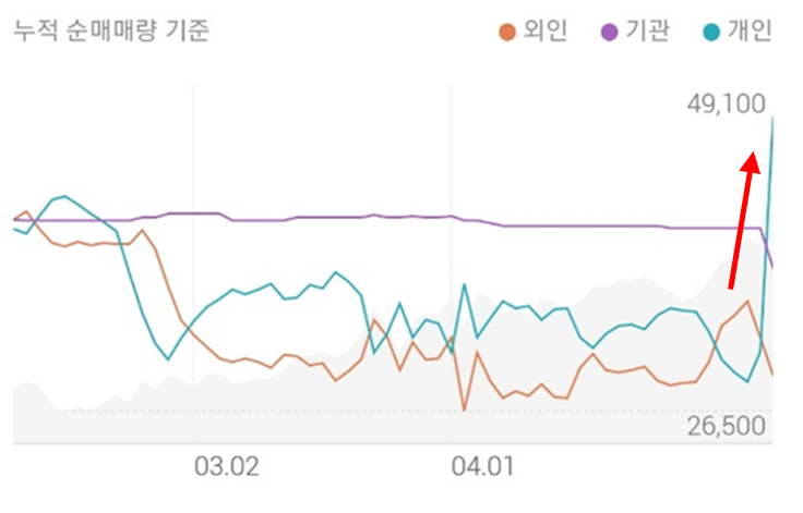 그러나 최근의 개인 매수세가 매우 강하다는 점은 주가 상승의 효과를 떠나 주가의 변동성이 매우 높아짐을 뜻하기에, 이 점은 꼭 유의하실 필요가 있다고 생각됩니다.