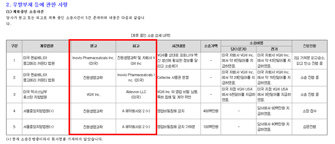 진원생명과학과 기술력이 있는 진원생명과학의 자회사인 VGXI가 타기업들과 여러가지 소송 전을 벌이고 있는데요. 이 소송전의 결과에 따라 진원생명과학과 자회사인 VGXI의 입지가 많이 달라질 수 있습니다.