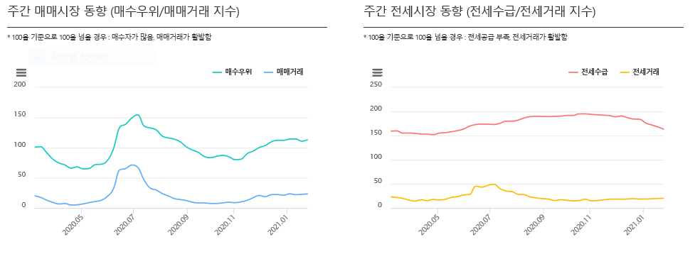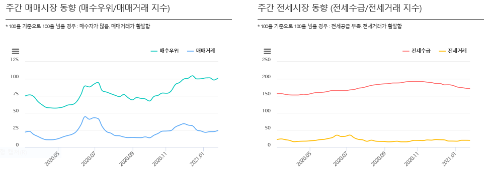 3. 주간 매매시장 동향은 100을 기준으로 횡보하고 있는 모습입니다.