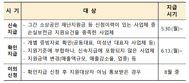 - 소상공인 손실보전금 신속 지급
